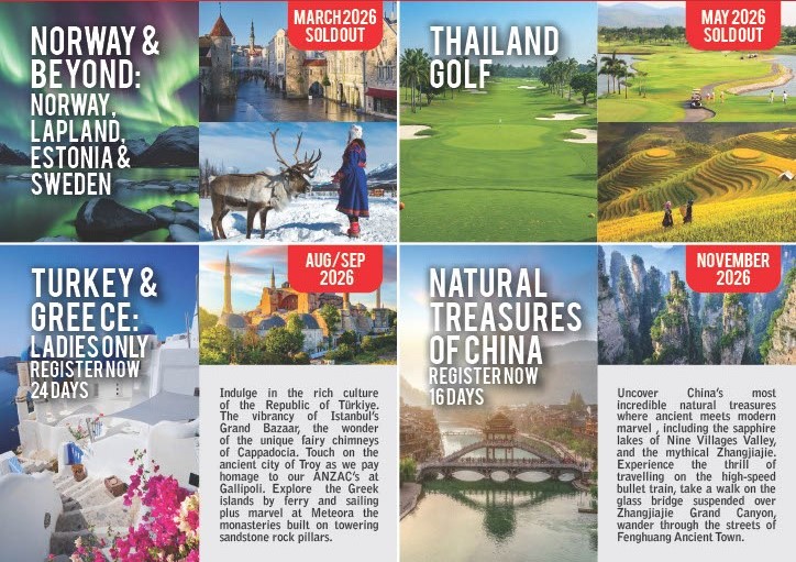 We are currently putting together some exciting new Escorted Tours. If you are wanting more information on what we have available then just click here to inquire about our range of fabulous Escorted Tours currently available. We will be in touch with you shortly.